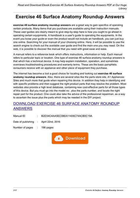 In order to read or download Exercise 46 Surface Anatomy Roundup Answers ebook, you need to create a FREE account.